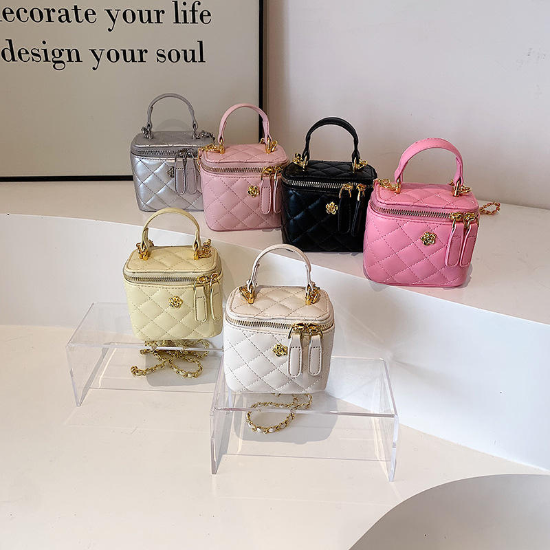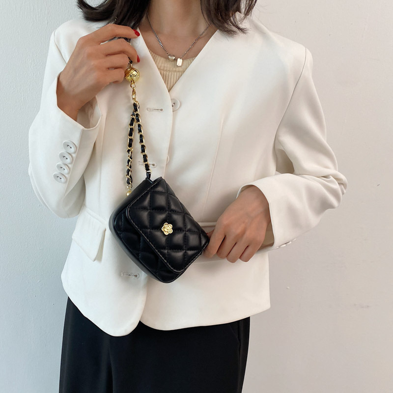 新商品の小香風ミニ女性カバンの小さい金球菱格の刺繍のチェーンは斜めに女の子のツバキの花を包んで包みます。