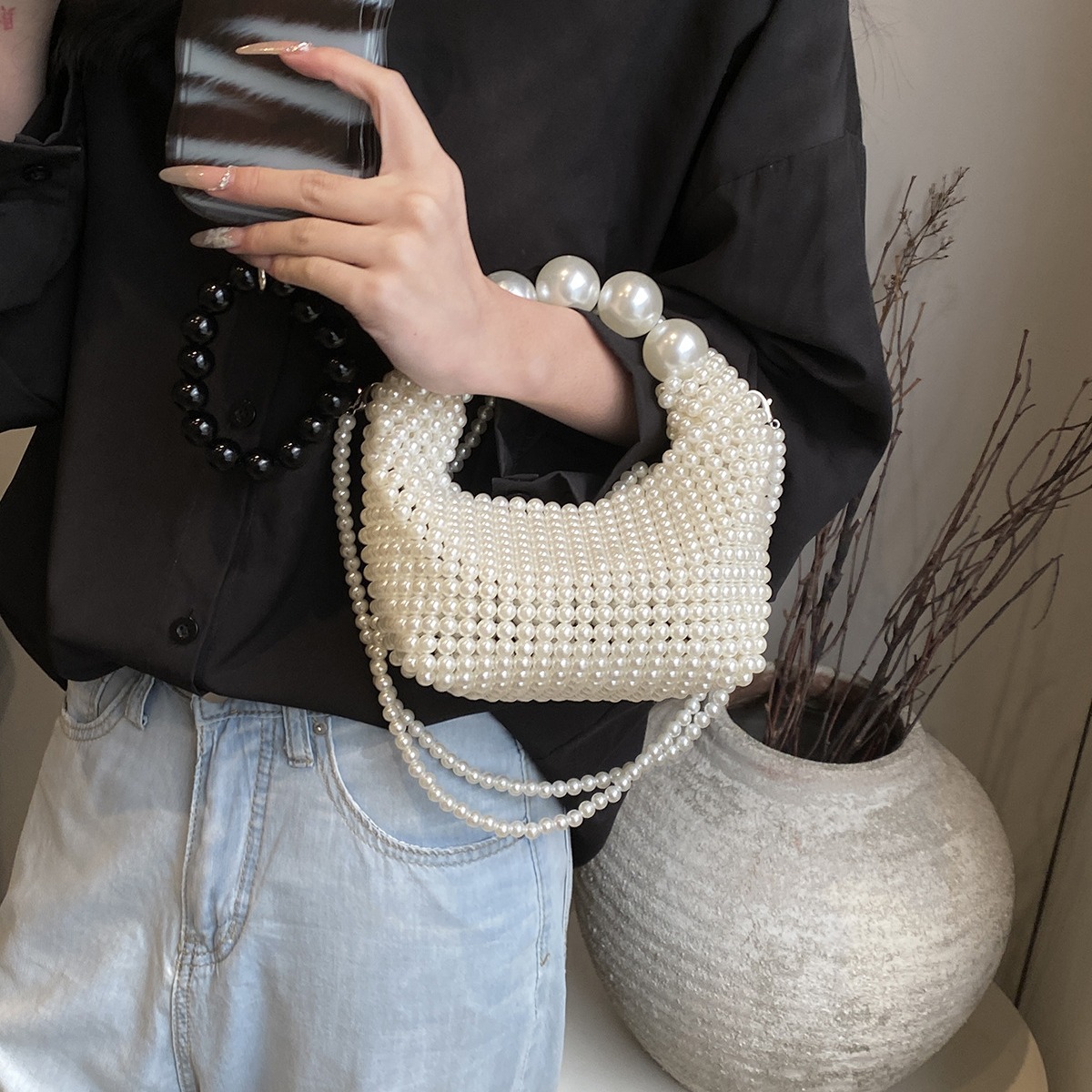 国境を越えた真珠の女性バッグネット赤爆金三日月手提げ斜めショルダーバッグ手作りビーズファッション輸出真珠バッグ卸売り