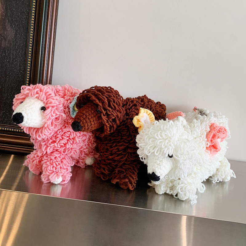 貴賓犬手作り編み毛糸バッグかわいいネットレッド子犬毛糸編みバッグ完成品冬アニメ斜め掛けバッグ