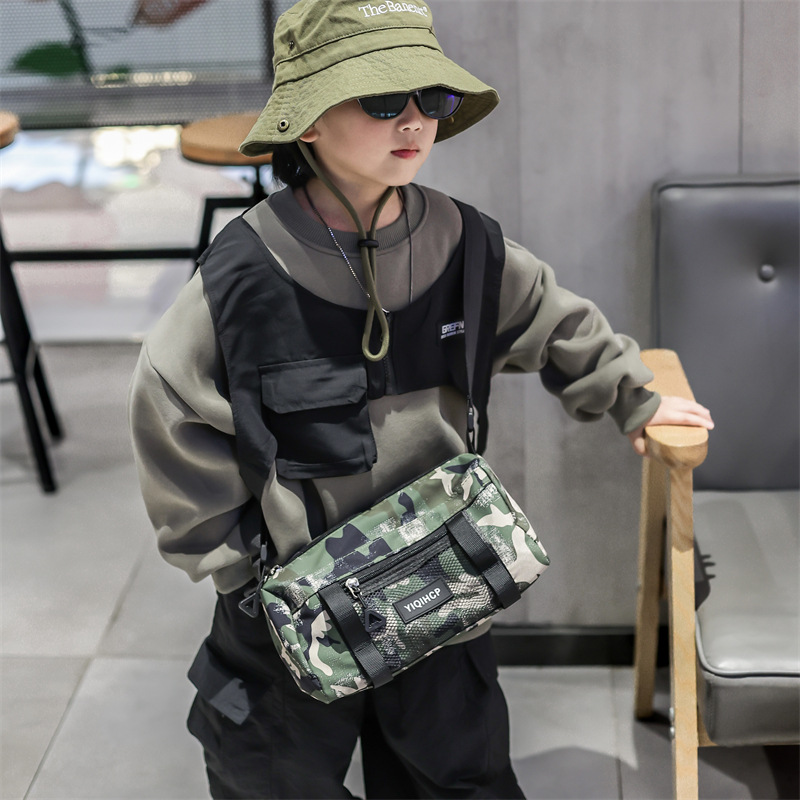 ファッション子供旅行カバン韓国版男の子女の子迷彩斜めショルダーバッグかっこいいプリントブランド個性ファッション布カバン