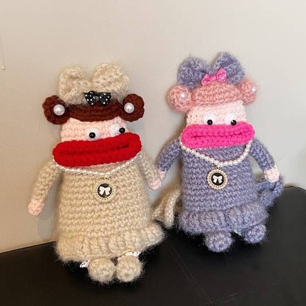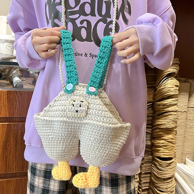 韓国系の手作りのかぎ針編みの毛糸はネットの赤い熊の手提げのコップのカバーの真珠の漫画のかわいいバックのズボンの斜めのショルダーバッグを包みます。