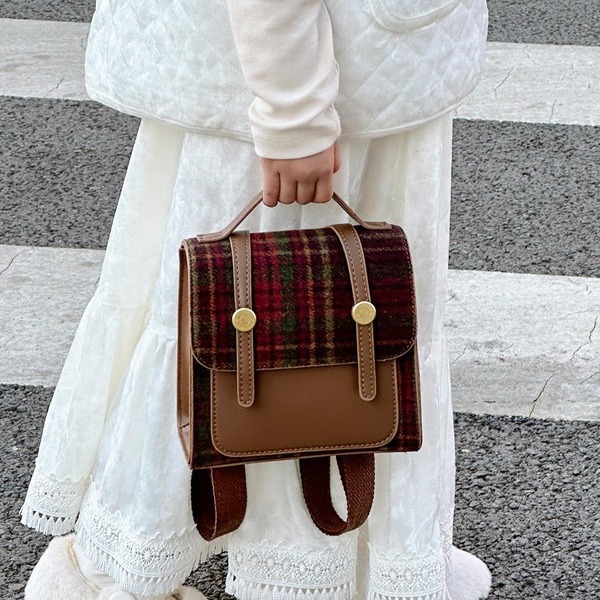 学院風子供リュックサック秋冬新作レトロ格子英倫風小リュックサック幼児可愛い親子カバン