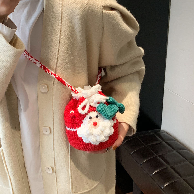 新しいクリスマスの手作りの編み物の毛糸は漫画のかわいい祝日の雰囲気の子供の斜めのショルダーバッグの小さい大衆のニットのカバンを包みます。