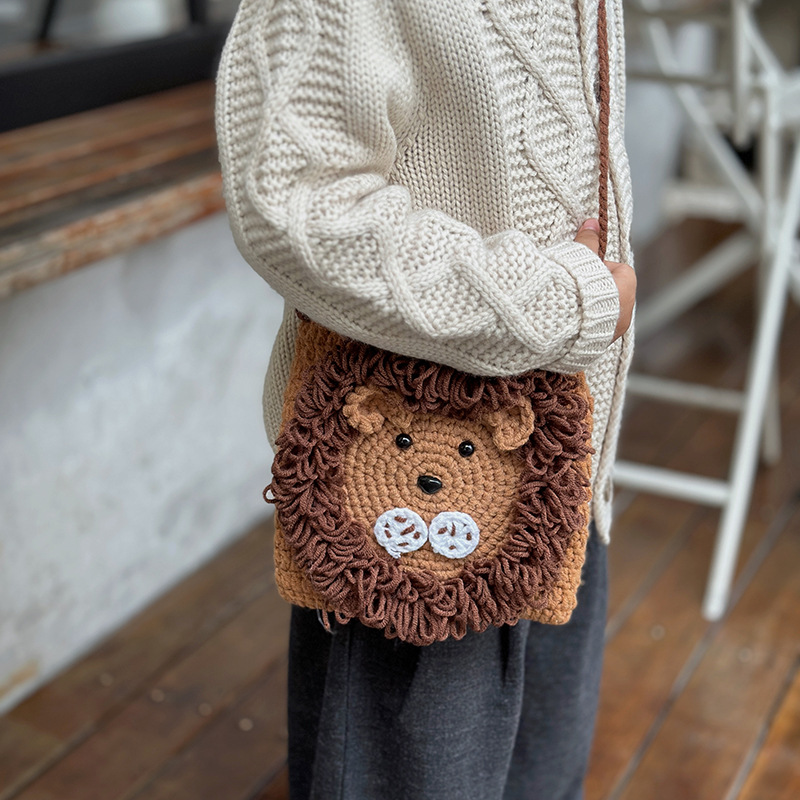 かわいい子供の毛糸の包みの純粋な手作りのかぎ針の漫画の小さい獅子の斜めのショルダーバッグの漫画の秋冬の小さい肩掛けの完成品