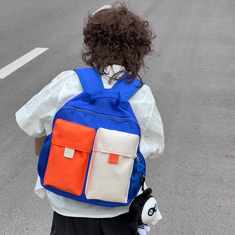 多機能の子供のリュックサックが色にぶつかります。