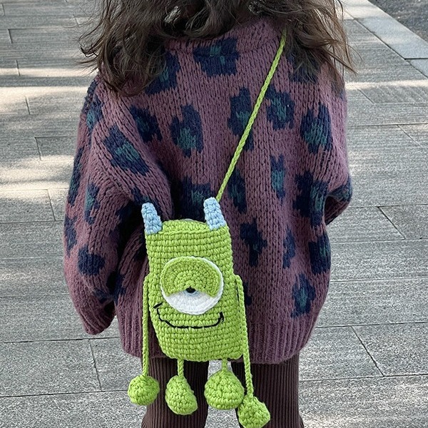 新しい子供の毛糸のカバンの手の漫画の片目の怪獣の手作りのかぎ針の斜め掛けのショルダーバッグの個性の漫画は携帯電話のカバンを責めます。