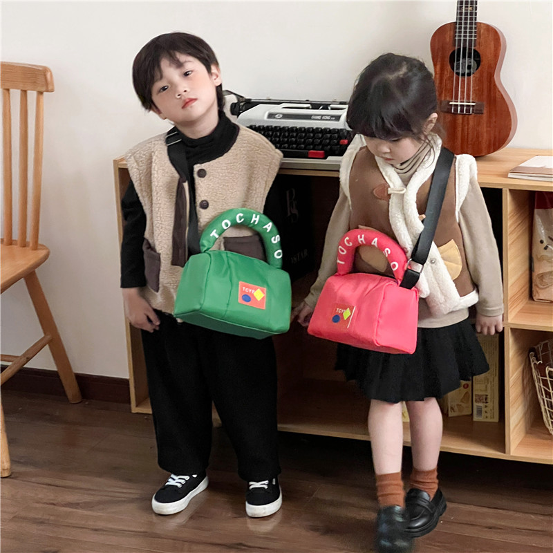 韓国版の漫画の子供の斜めのショルダーバッグの小さい大衆の幼児の軽い旅行のカバンの秋冬の綿のアルファベットの運動のハンドバッグ