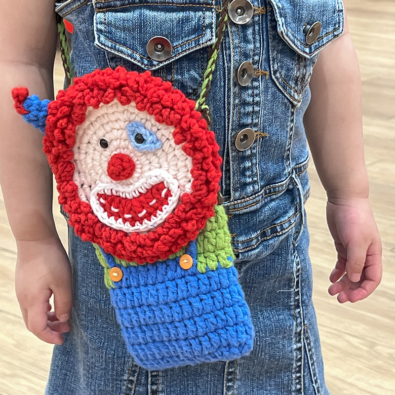 子供手作り毛糸バッグかわいい漫画ピエロ幼児小銭入れかぎ針編みギフトストラップ赤ちゃん斜め掛けバッグ