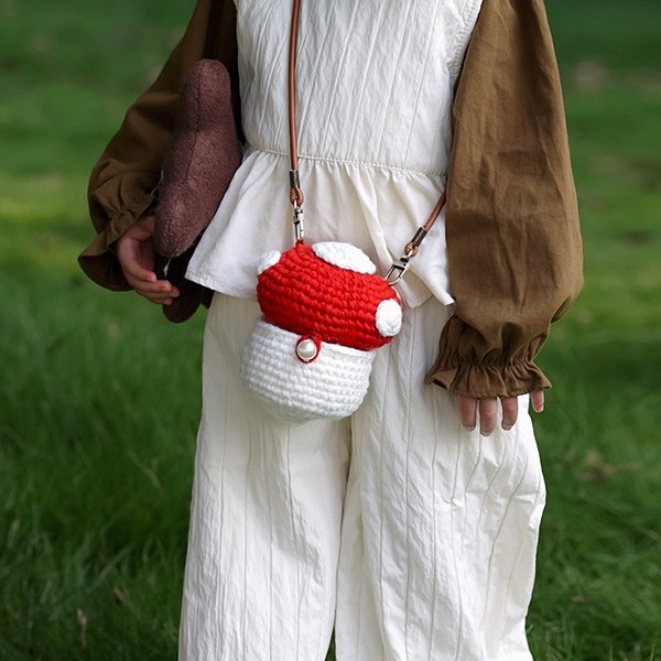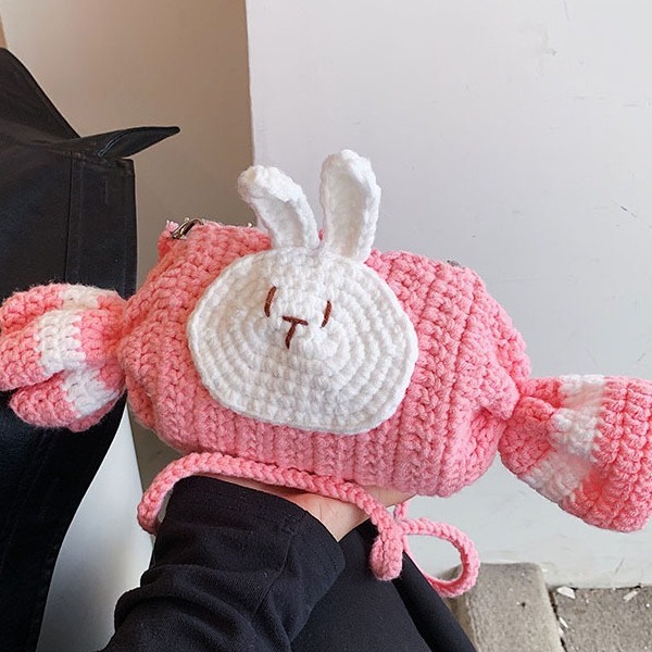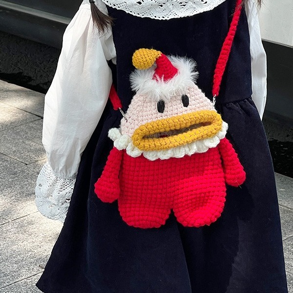 手作りの毛糸のカバンが可愛いです。