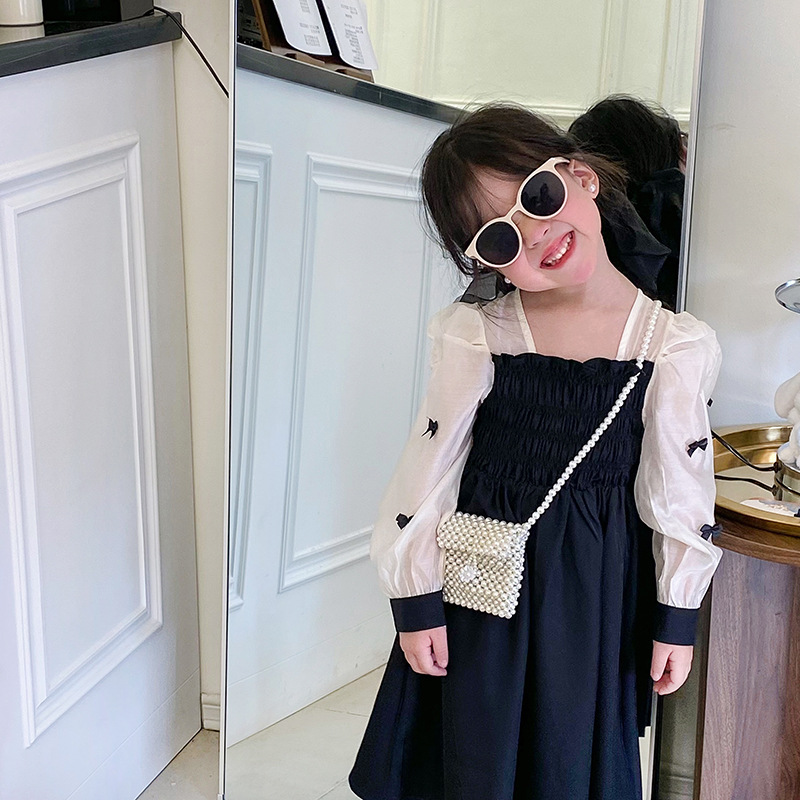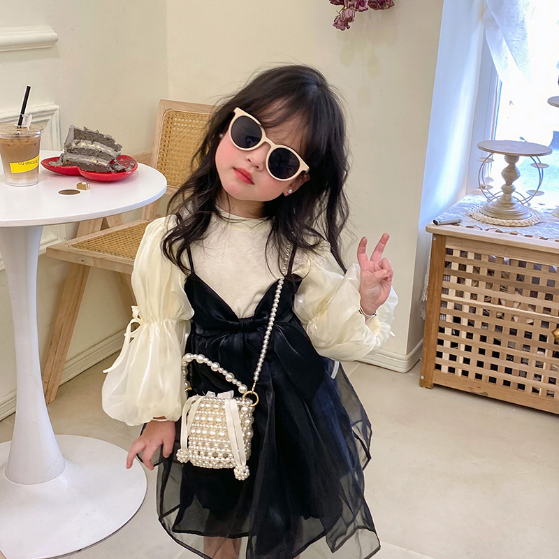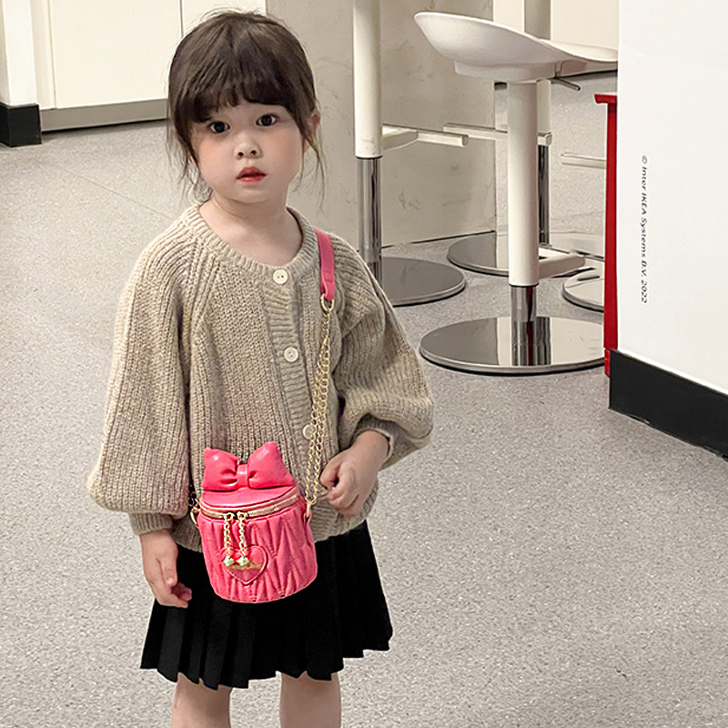 新しい子供のカバンのかわいい蝶結びのバケツの女の子は斜めに包みます。