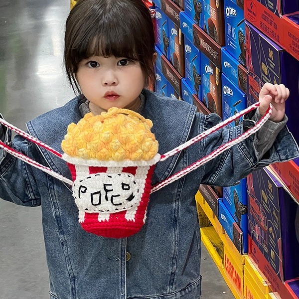 手作りの編み物の毛糸は秋冬の新型のかわいいアニメのポップコーンの子供の斜めのショルダーバッグの男の子の女の子の親子のカバンを包みます。