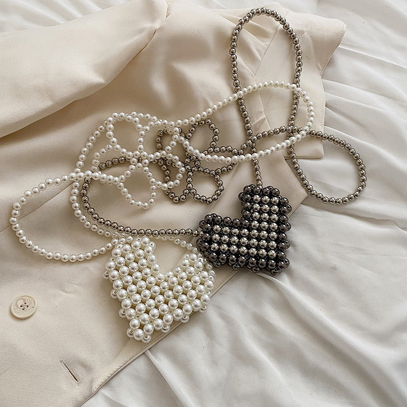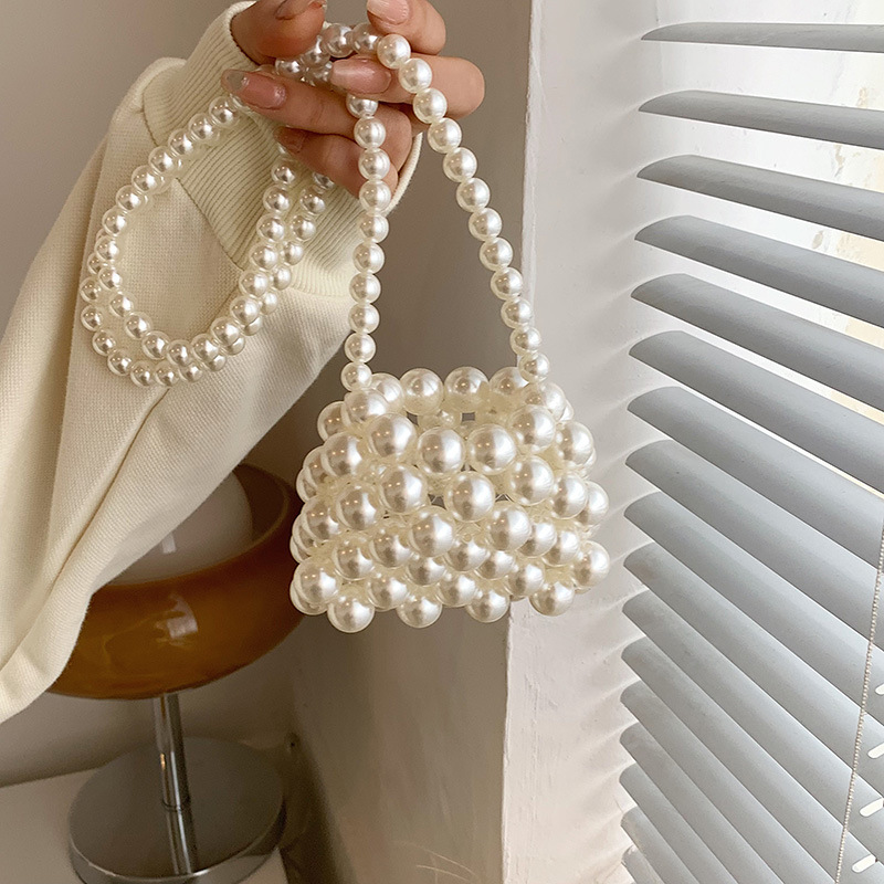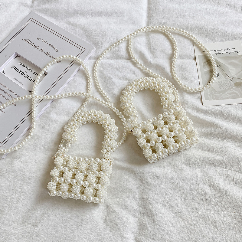夏の真珠のカバンの韓国版のネットの赤いins風の手作りのビーズのハンドバッグの小さい大衆のファッションのミニの斜めのショルダーバッグの女性