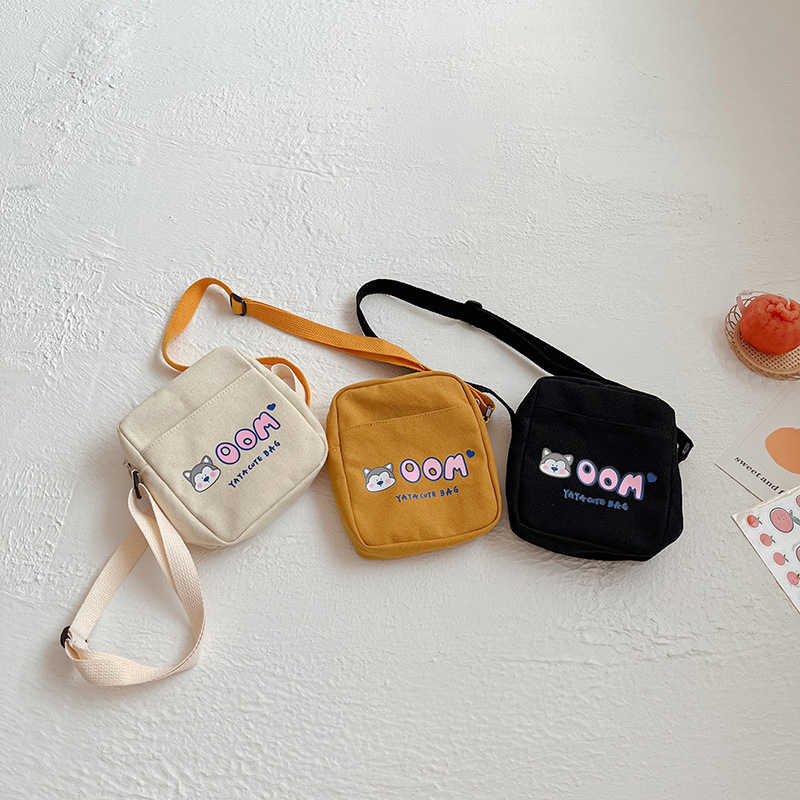 韓国ins風子供バッグ日韓シンプル百合アルファベットキャンバスバッグ個性シングル肩斜め掛け携帯バッグ