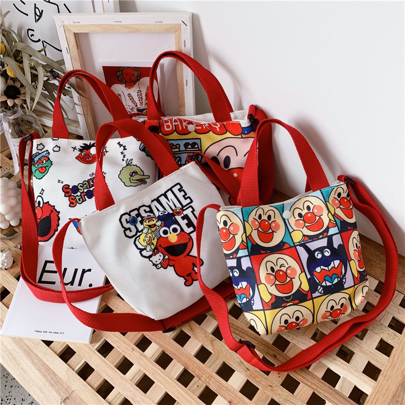 新しい子供のキャンバスのカブトの漫画の幼稚園は斜めにキャンバスのバッグの弁当袋のかわいいプリントの大容量の補習袋にまたがります。