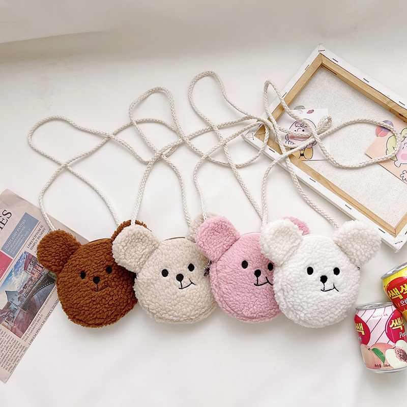 韩国子供カバンins可爱い子羊毛ベアベア幼児斜めがけショルダーバッグ森系男女赤ちゃん小銭入れ