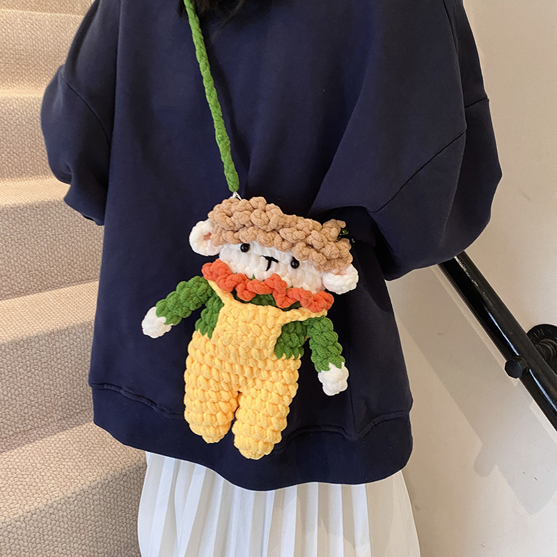 秋冬新作可愛い毛糸カバン手作りかぎ針編み漫画カバン羊赤ちゃんアクセサリー人形レディースショルダーバッグ
