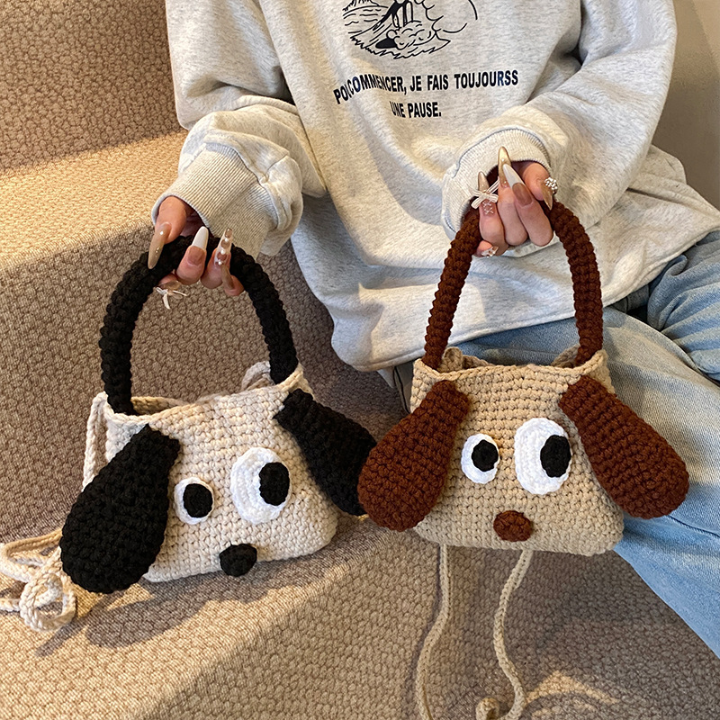 かわいい子犬の手作りのかぎ針編みの完成品の漫画の大きい耳の犬の子供のハンドバッグの韓国版の秋冬の百合の子供のカバン
