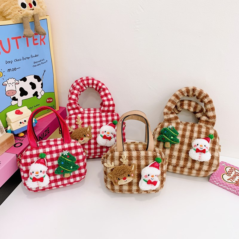 秋冬の新型子供の斜めのショルダーバッグの毛は格子のクリスマスのプレゼントのハンドバッグの女の子のかわいい漫画のキャンディーの袋です。
