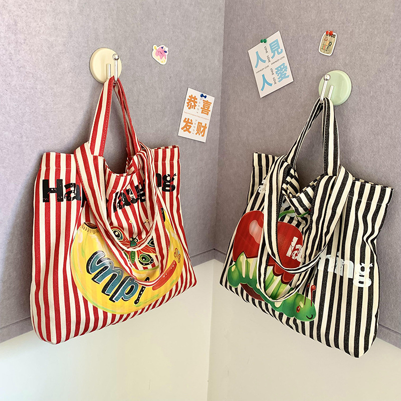 新商品の果物の殺し屋のストライプの小さい大衆の設計の大容量のキャンバスのシングル肩の手提げの学生は通勤します。