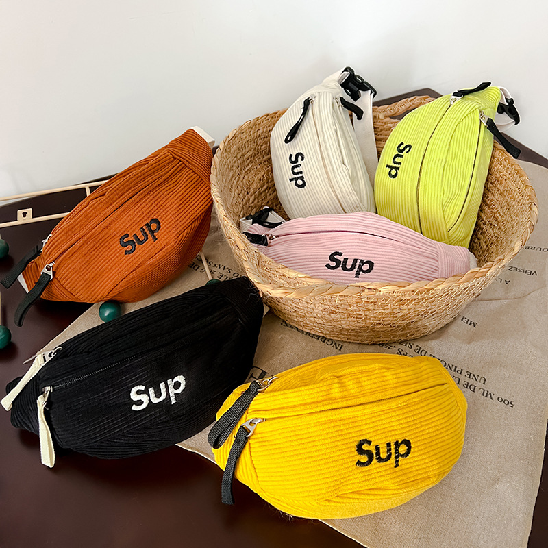 ファッションのアルファベットの子供の腰はコーデュロイの純色の韓国版の男女の子供の胸を包んで幼児を包んで小銭の斜めのショルダーバッグに乗ります。