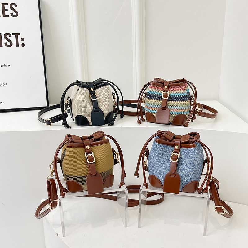色にぶつかって口を編むバケツバッグ韓国版契約ファッション斜めショルダーバッグ