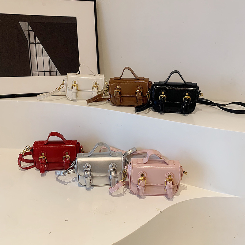 学院風子供カバン秋冬新作油蝋皮手提げミニカバンレトロ女の子ストラップ小斜め掛けカバン