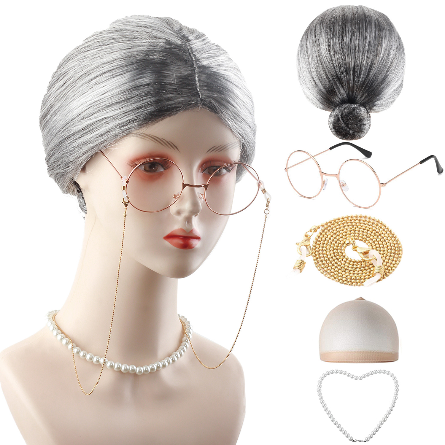 中高年かつらおばあちゃんかつら子供服おばあさん演出かつら舞台演出道具