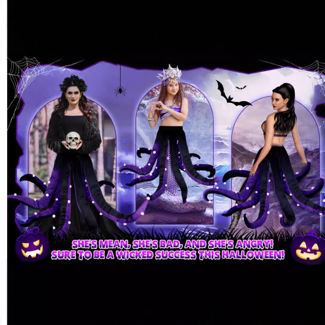 女性タコ服装黒紫色タコ底シャツ長触手魔女ハロウィーン服装テーマパーティー