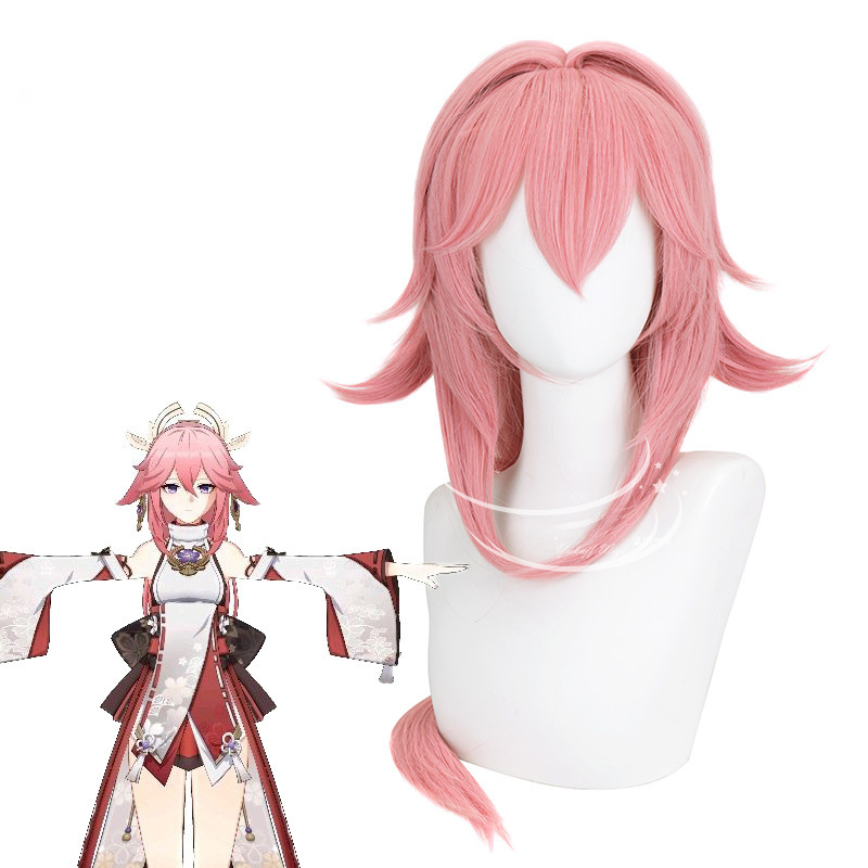 元神八重神子cosかつらyae稲妻城キツネミスピンクロングヘア