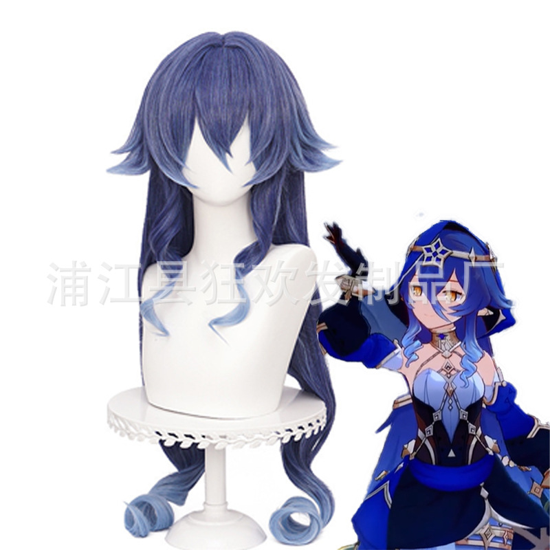 原神ライラ混ブルーグラデーションロング巻きツインテールcosアニメかつら