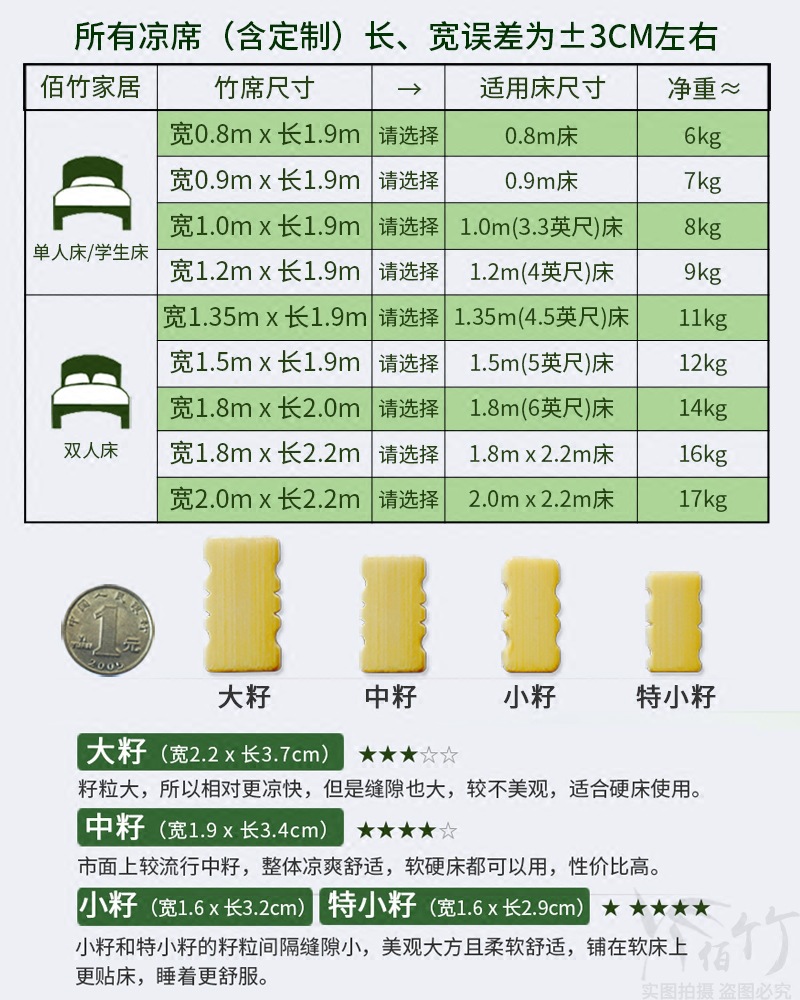 9wor夏竹席麻将席1.5mベッド麻雀凉席1.8メートル竹ブロック凉席1.2枚学生寮