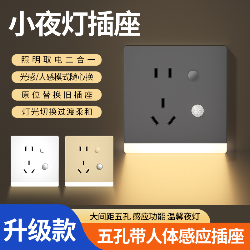 LEDフットライト人体誘導ナイトライト家庭用5穴ソケット付き86型埋め込み通路階段ステップライト