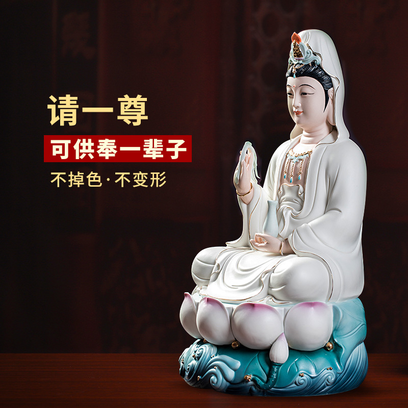 9w or陶磁器宝蓮観音菩薩は仏像のリビングルームに座って、家庭用観世音菩薩を供えます。
