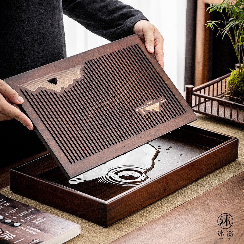 9wor実木茶盤工夫茶器茶台軽豪華現代貯水式トレー小型茶海重竹貯水乾