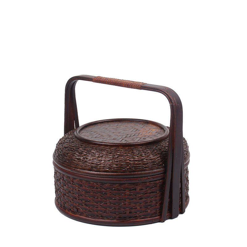 9worレトロ竹編み弁当箱中国式バスケット竹編みラッカー弁当箱果物バスケット収納バスケット送飯バスケット茶点