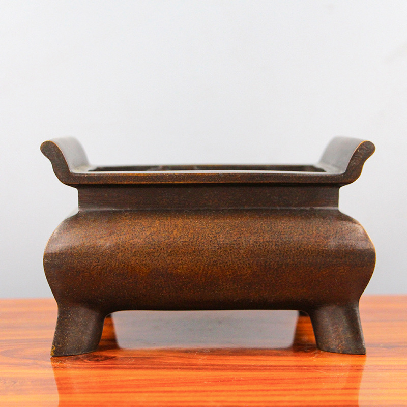 9wor純銅長方形銅香炉家庭用室内供養炉模造古四足鼎宣徳炉仏堂供仏線