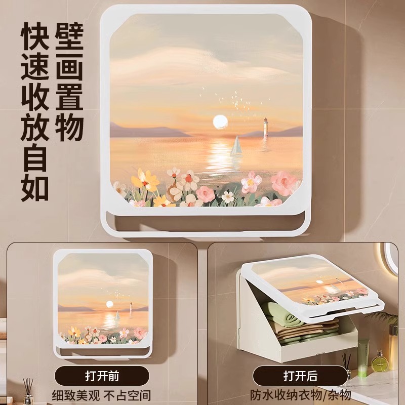 浴室壁画収納ボックス、入浴用のきれいな衣類、防水折りたたみ壁掛け収納ラック、浴室キャビネット