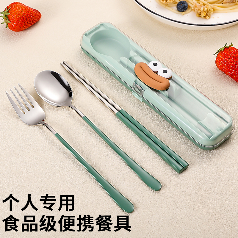 304 ステンレス鋼の箸スプーンセットシングルスクールオフィスワーカーかわいいポータブル食器収納ボックス