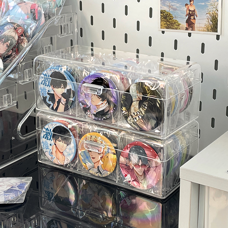 バージャストレージボックスアクリル透明フリップトップボックス大容量58ミリメートルバッジ小さなカード周辺機器ディスプレイスタンド
