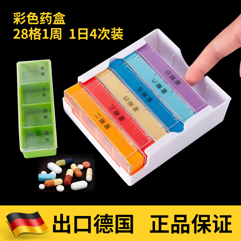 輸出ドイツ携帯薬箱28格一週間分装ミニ錠剤収納箱密封防湿分薬箱