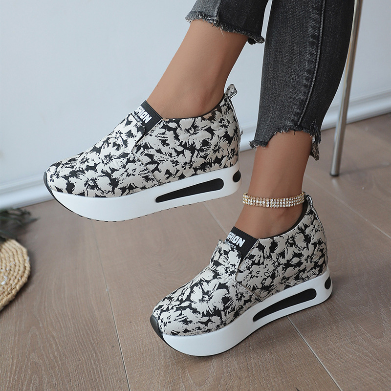 欧米の対外貿易の中で高くなってレースのスパンコールの女性の2024新型の通気性のネットの糸のカジュアルなカバーの足の松餅の厚い底の女性の靴