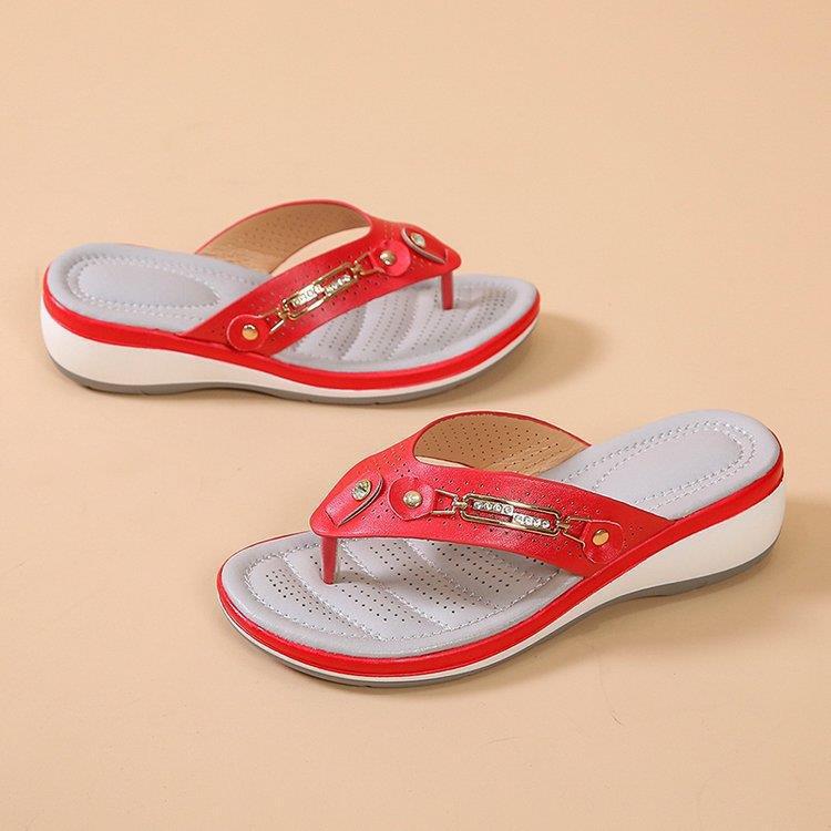 外国貿易の大きいサイズの女性のスリッパ2023年夏の新型のつま先の坂と金属のボタンのファッション的な砂浜のサンダルの女性の靴