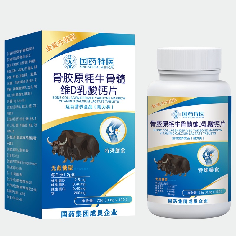 Sinopharm Group Sinopharm Special Medical コラーゲン ヤク骨髄ビタミン D 乳酸カルシウム タブレット 120 錠、1 日 1 回、1 回あたり 2 錠