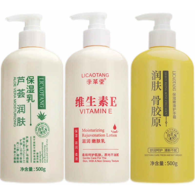 李草堂潤いビタミンeアロエ保湿乳コラーゲン潤い肌500gハンドクリーム乾燥