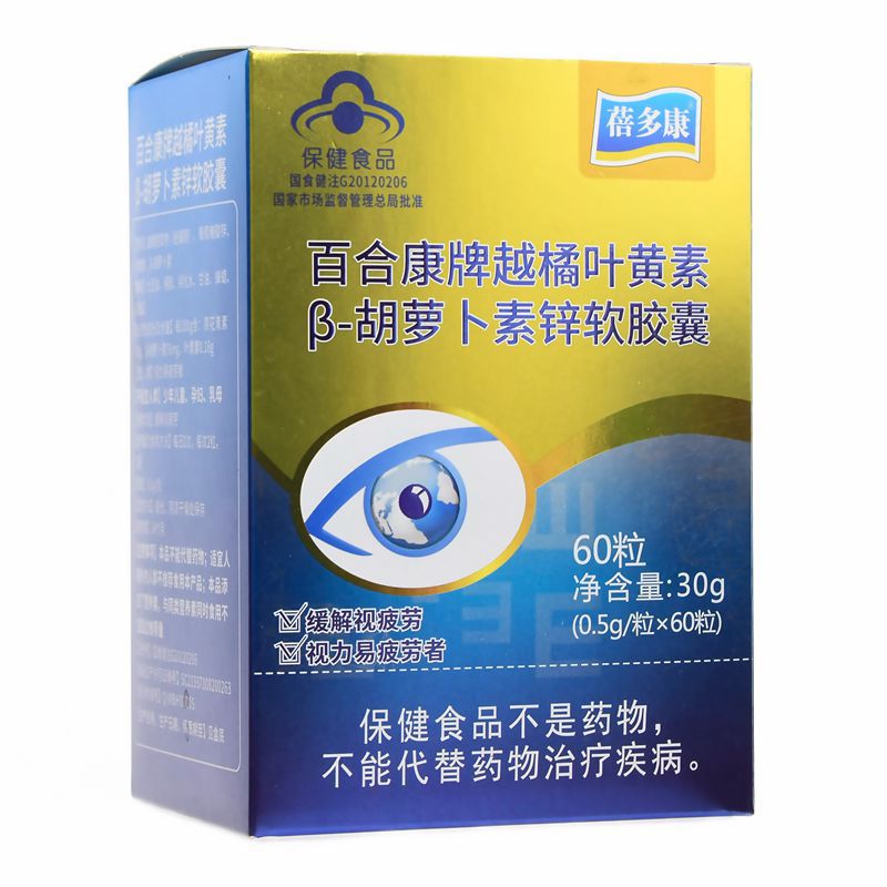 【代理】百合康牌越橘キサントフィル β-カロチン亜鉛ソフトカプセル60粒