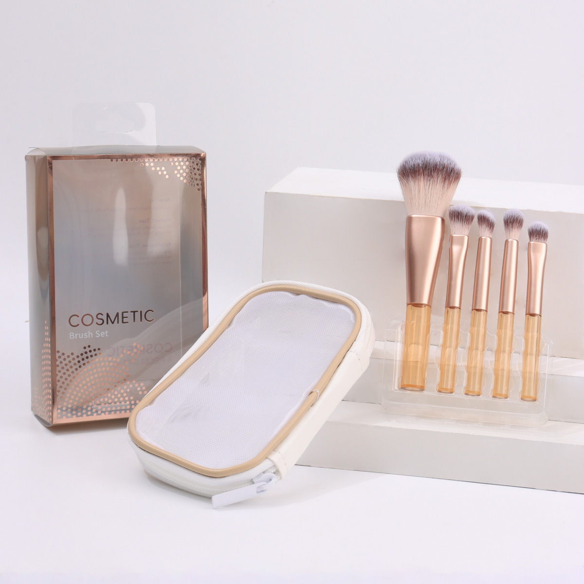 国境を越えた売れ筋の新しい 5 ミニショートハンドル滄州ソフトヘアメイクブラシポータブルネットバッグセット付き