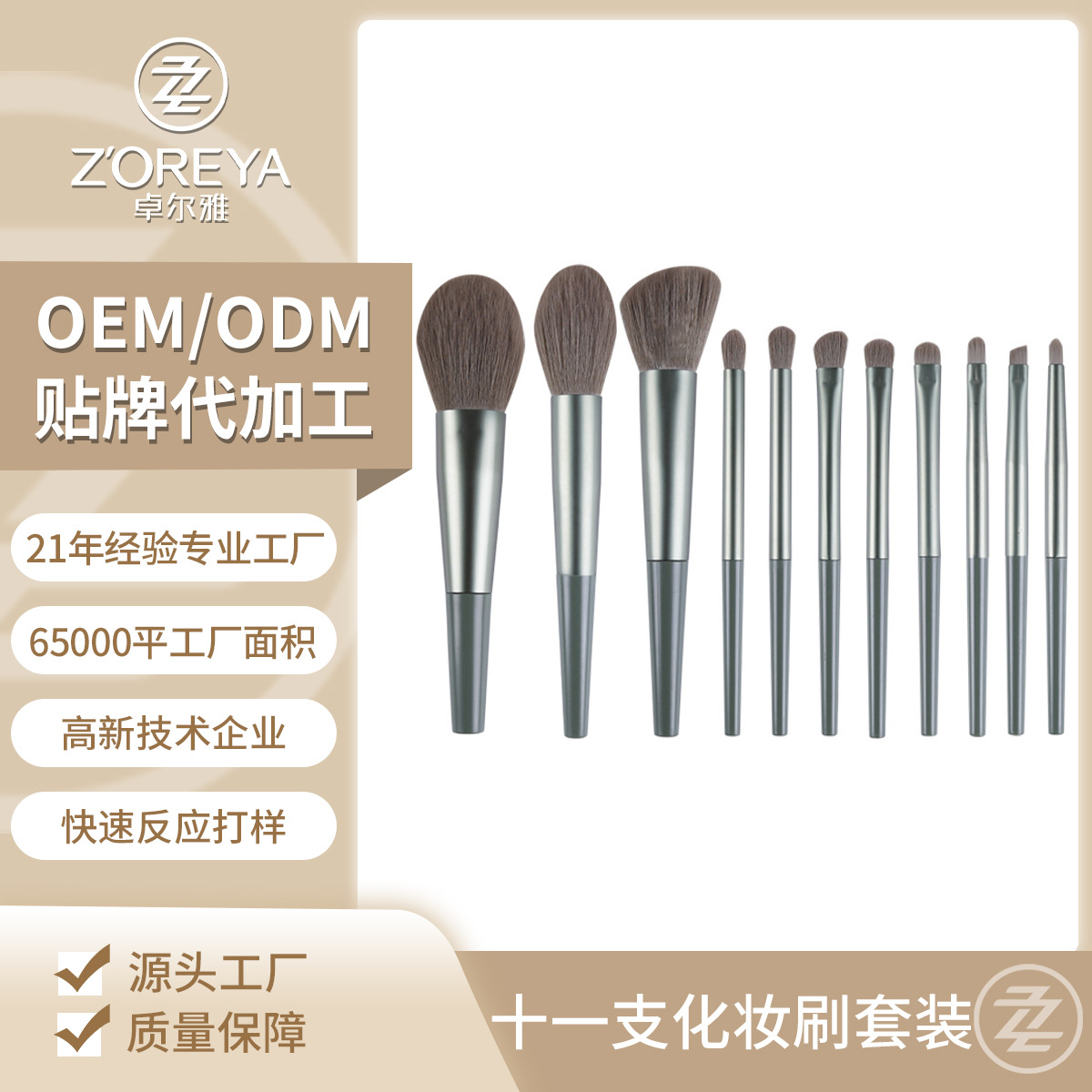 カスタム11本化粧ブラシ美化粧ツール化粧ブラシセット頬紅アイシャドウブラシスポット卸売り印刷可能ロゴ
