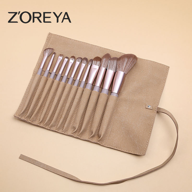 Zoreyaミルクカレー色美化粧道具ファンデーションアイシャドウブラシセット斜め切先12本化粧ブラシセット卸売り