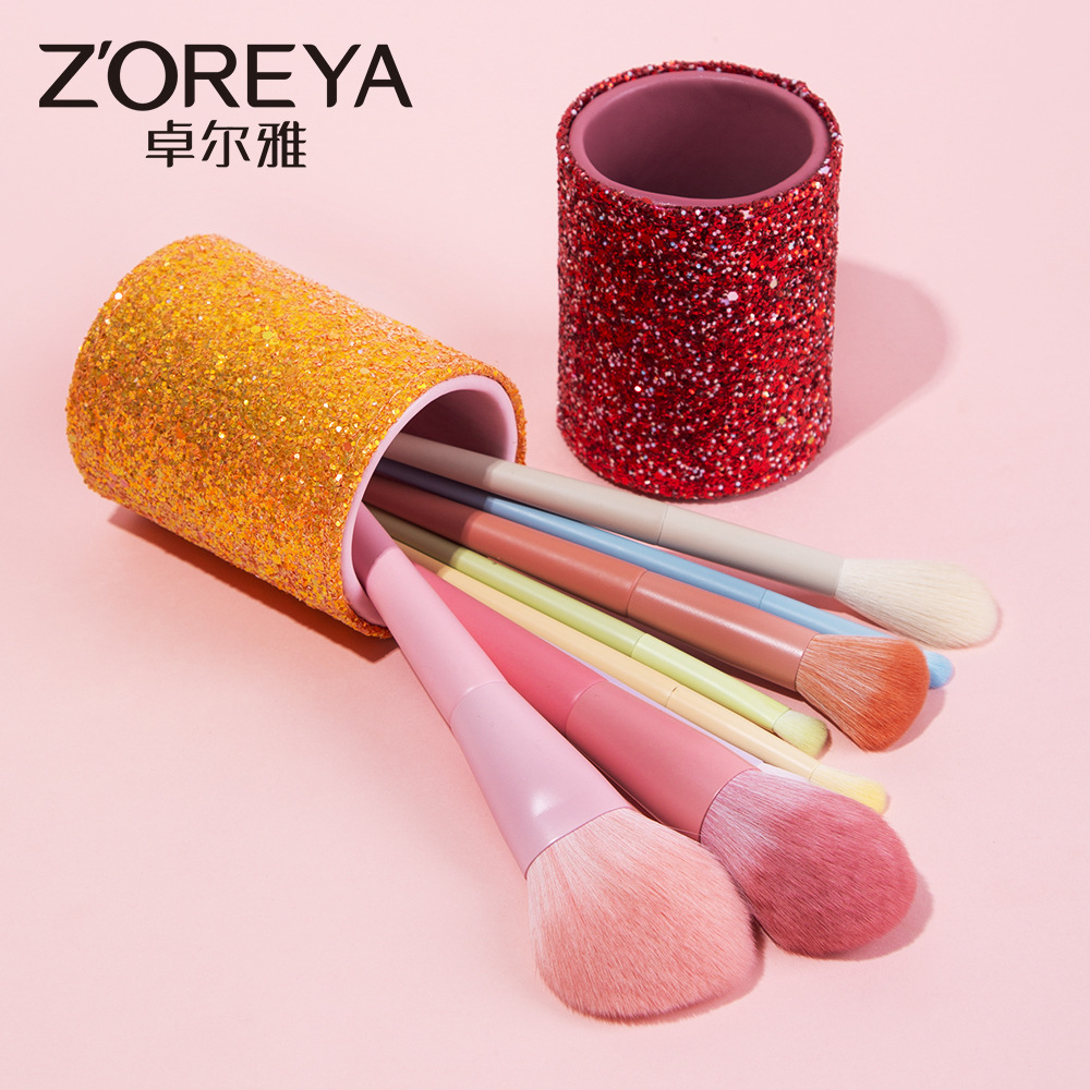 卓爾雅新品美化粧道具頬紅散ファンデーションブラシ収納セット8本カラー塗装化粧ブラシセット