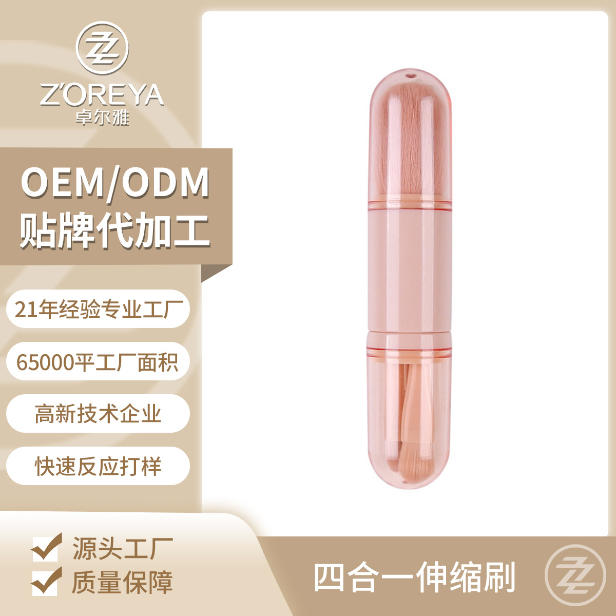 工場オーダーメイドミニ四合一化粧ブラシ美化粧ツールカバー付き防塵粉カバー付きアイシャドー伸縮ブラシ